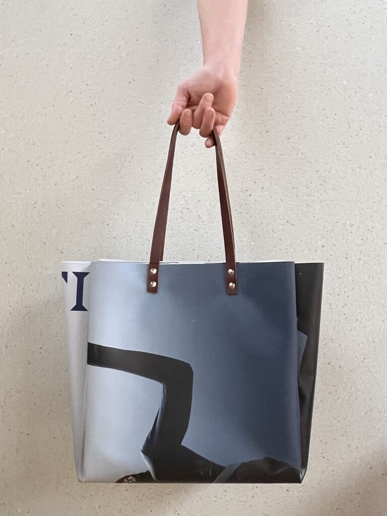 Daarna kies je een mooi stuk banner om je tas van te maken. Het design van de banner bepaalt het uiterlijk en de stijl van je tas. Er is een grote keuze aan bannermateriaal; van teksten tot foto’s tot illustraties in allerlei kleuren en stijlen.