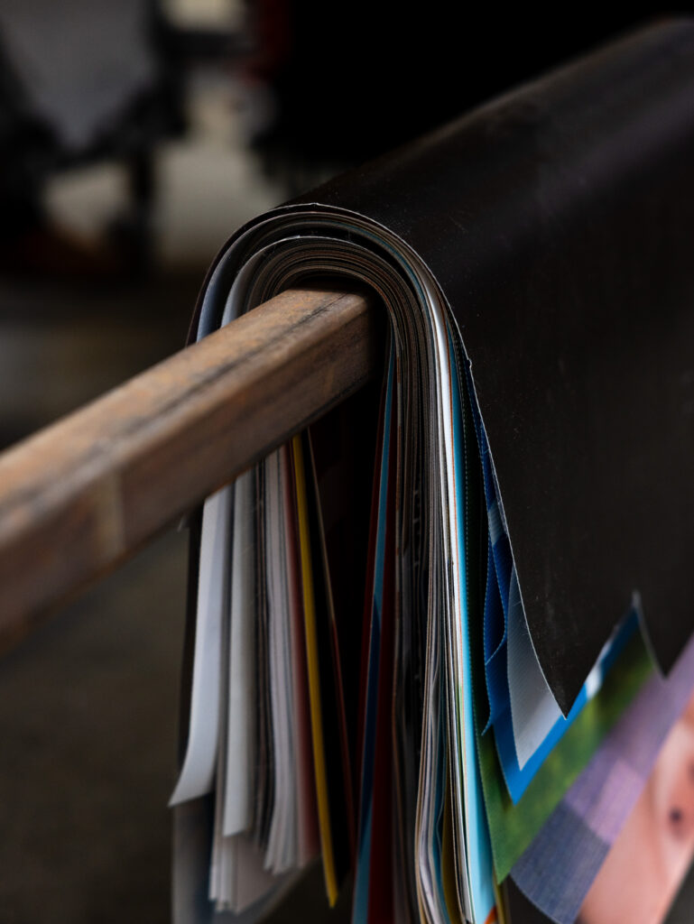 Je begint de workshop met bepalen welk model tas je wilt gaan maken. In de werkplaats hangt een collectie bannertassen in verschillende modellen waaruit je kunt kiezen. Ze hebben allemaal een hedendaagse en functionele vormgeving, maar elk een eigen stijl.