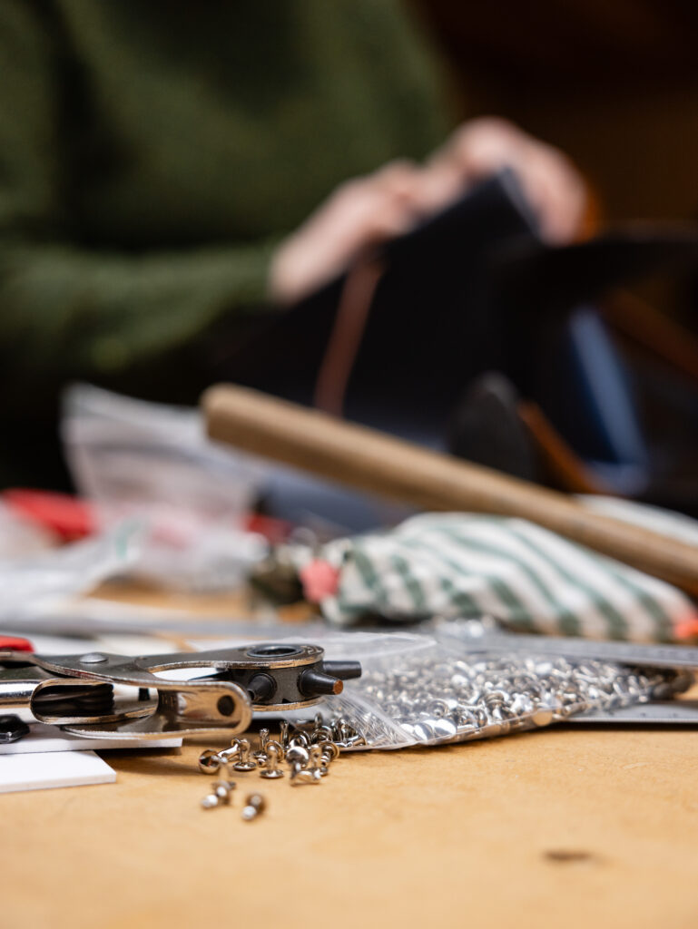 De producten zijn te koop, maar je kan ook een van de workshops volgen en bijvoorbeeld je eigen tas of portemonnee maken.